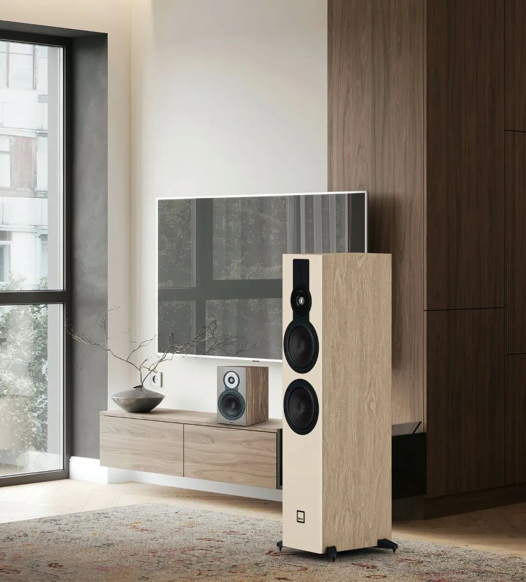 铝制高音单元挡板、品牌定制接线柱与磁吸式网罩等细节,层层勾勒出细腻质感;落地式型号更搭载可调节铝制支撑底座,兼顾稳固放置与摆位调校需求。最终呈现出兼具高端质感与简约美学的设计语言,尽显达尼独树一帜的产品格调。达尼SONIK系列在外观设计上延续了北欧简约风格,提供黑梣木色、白色、胡桃木色、天然橡木色四款现代配色,满足不同用户的家居审美需求。