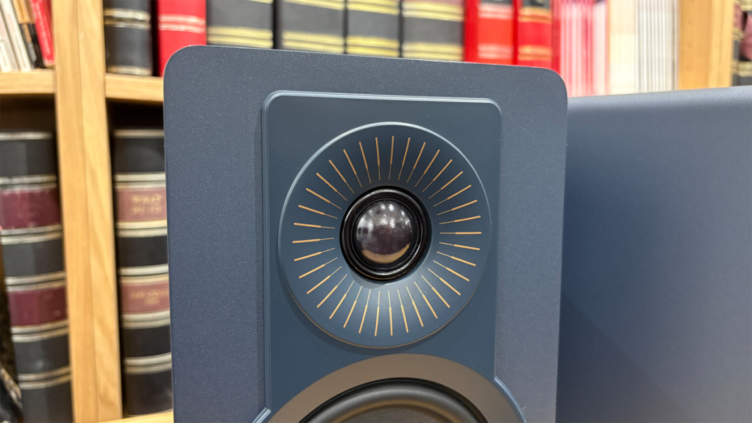 我们的评测样品采用了极具吸引力的 “深湖蓝” 饰面,此外还有明亮的 “鎏金黄”,以及更低调的黑色、白色和胡桃木色可供选择。从高音单元辐射出的星爆状纹路是一处精妙的设计亮点,所有配色均有此设计,在我们的蓝色样品上,金色细节的对比尤为突出。